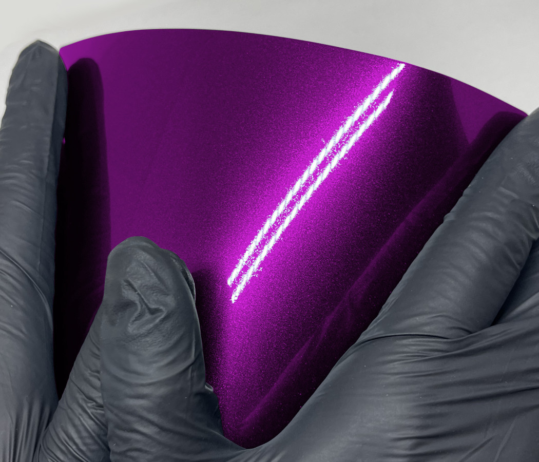 Metallic Grape Purple wrapping film with extremely glossy Super Gloss+ structure and low initial tack adhesive.