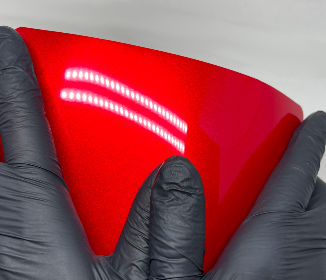 WunderVinyl Super Gloss+ series has an extremely glossy surface. It’s even glossier than most modern factory paintworks. And yes, you can mirror yourself from it. Achieve a flexible color change for your car without that cheapish “wrapped” look. In the picture above we have compared this vinyl to normal glossy black car wrapping film.