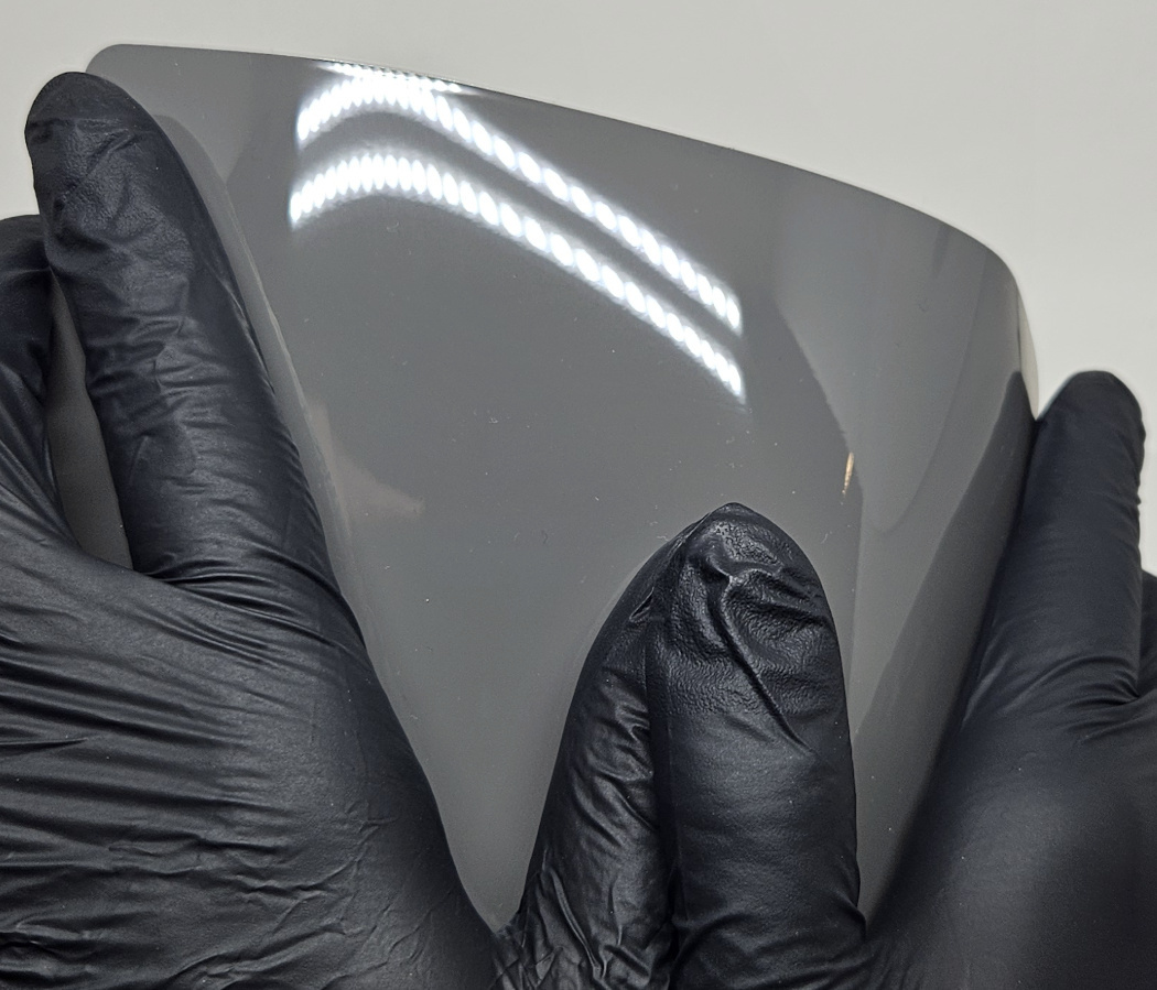 In the picture below we have compared the glossiness of two different car wrapping films: WunderVinyl Super Gloss+ Piano Black HT and Gloss Black film from another popular manufacturer. The comparison was done in a photo booth with powerful neutral lightning and high-resolution camera.